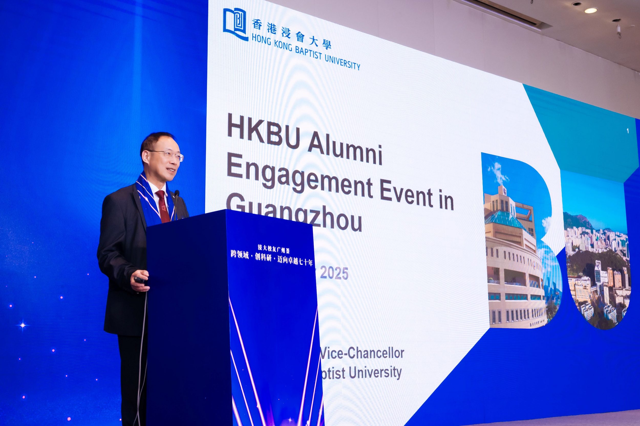 The “BU Alumni Ensemble in Guangzhou” was successfully held in November at Grand Hyatt Guangzhou, Chinese Mainland. Hosting over 320 alumni and friends residing in Guangzhou and its neighbouring regions, this engagement initiative marked a special celebration for HKBU’s upcoming 70th anniversary, under the theme “Celebrating 70 Years of Excellence: Embracing Transdisciplinarity, Research, and Innovation.”