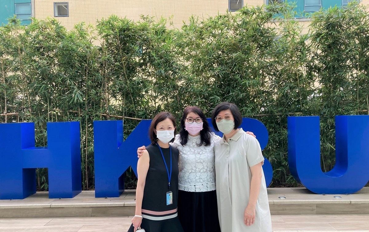 盧秀麗校友 (中) 與歷史系系主任劉詠聰教授 (右) 及校友事務處總監李惠儀博士 (左) 於浸大相聚。