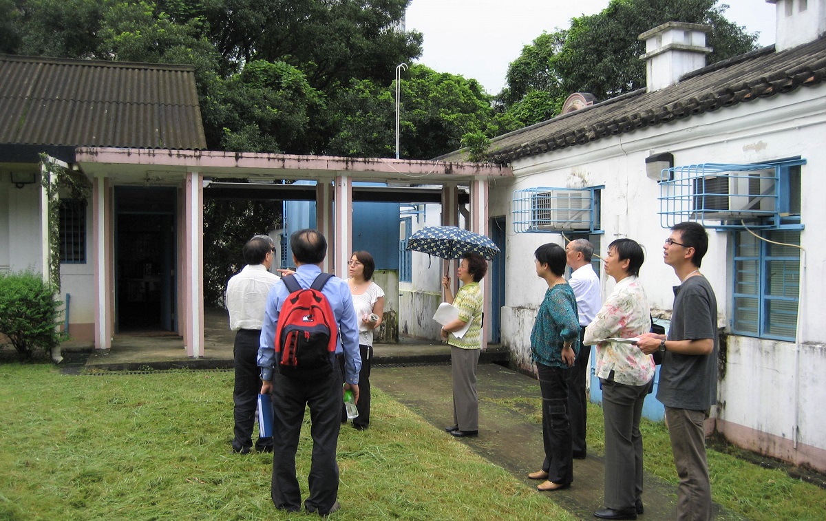 2008年,盧校友 (左三) 於康樂及文化事務署總部工作時,在舊大埔警署介紹「活化歷史建築伙伴計劃」。